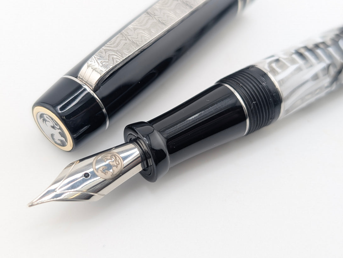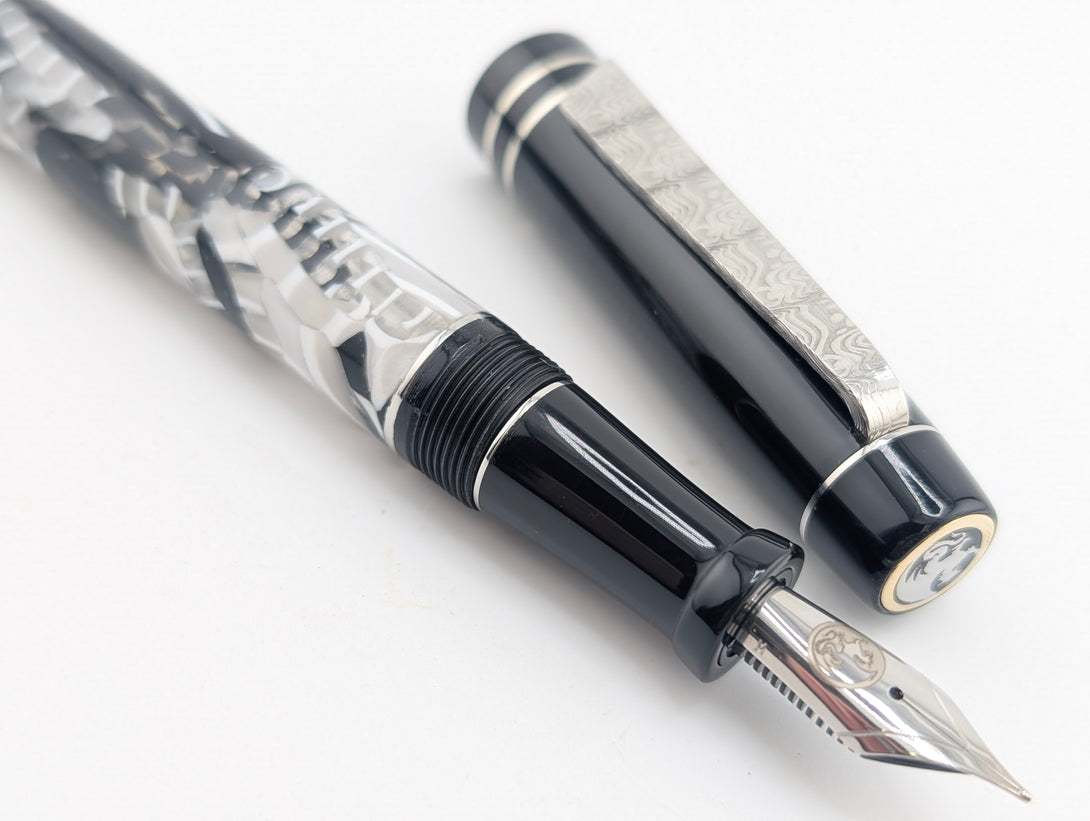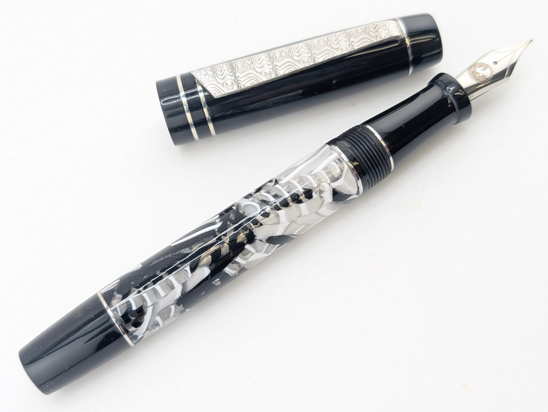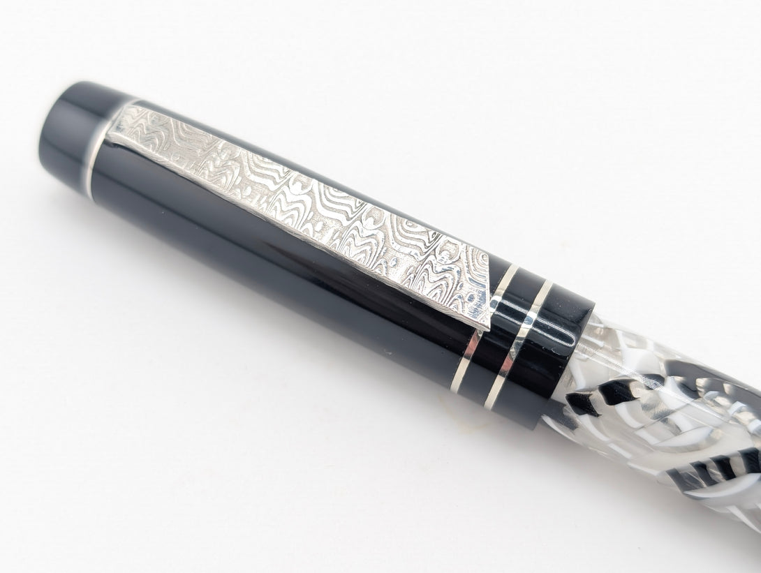 Carina 14 in B&W Cellulose Acetate with Black Resin - Damascus Steel