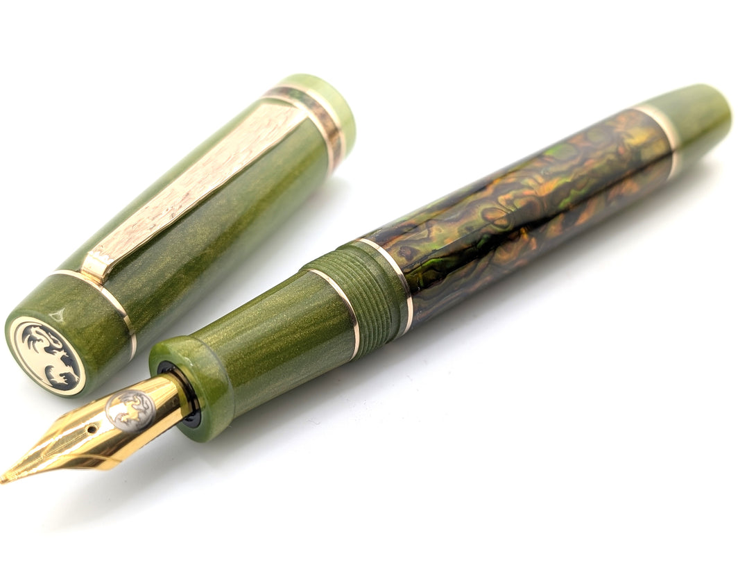 Carina Hapalua 15 in Green/Gold Abalone w/ Honey Olive Resin