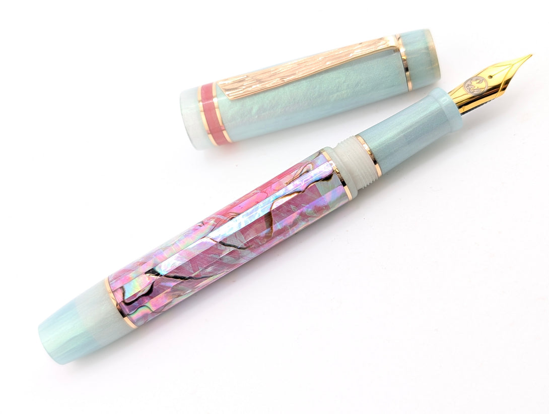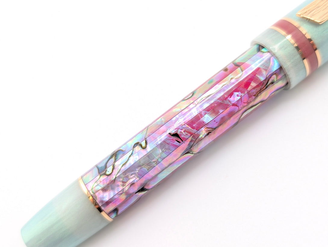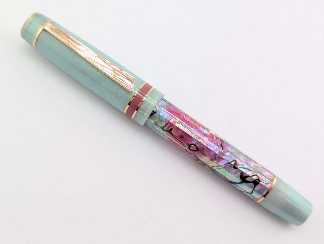 Carina Hapalua in Shredded Aqua Rose Abalone with Ghost Wasabi Resin