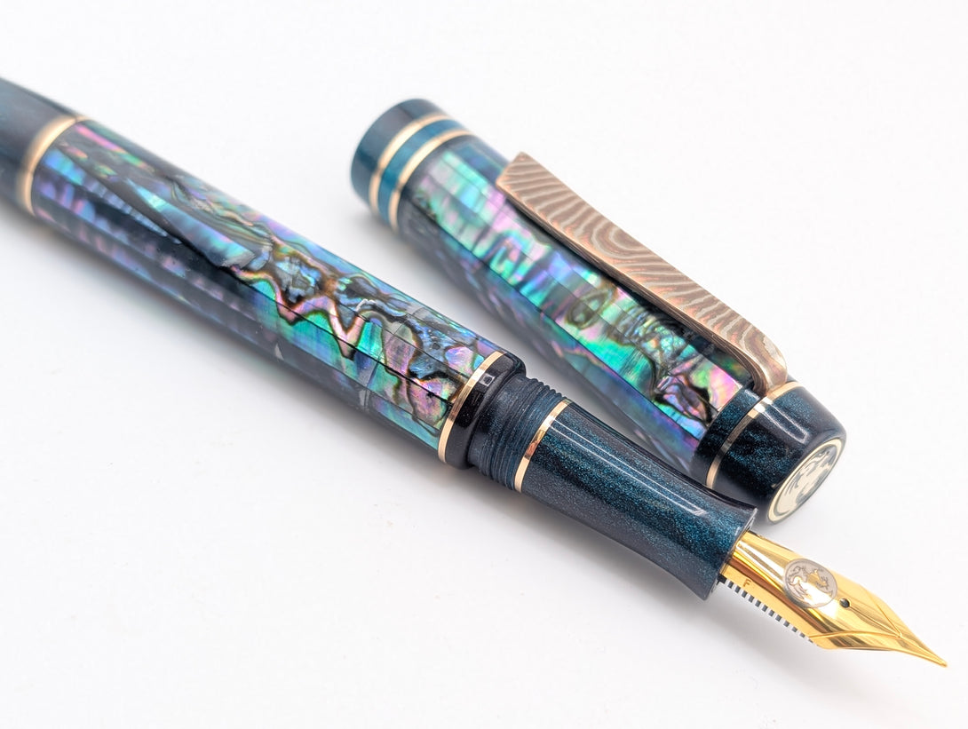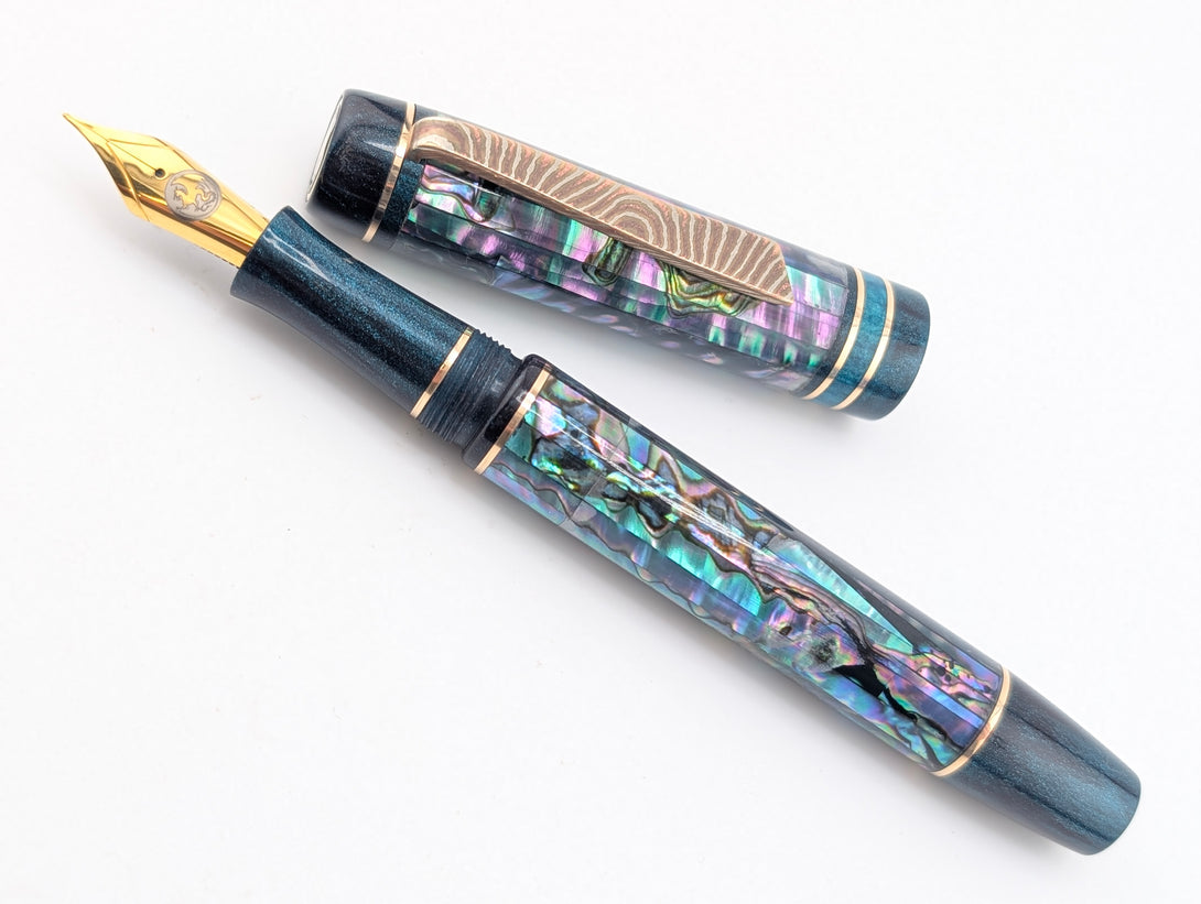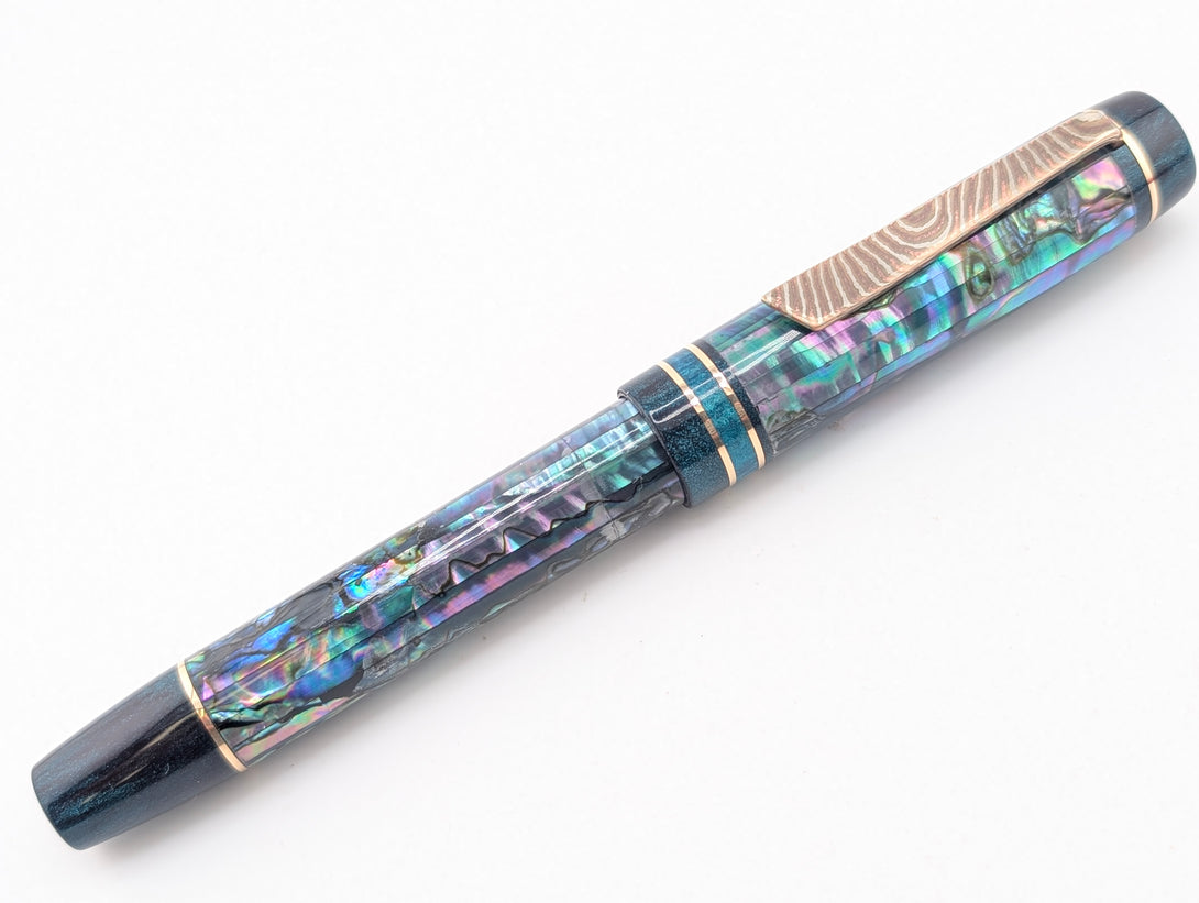 Carina Ragazzone in Dark Mexican Green Abalone w/ Aquifer Resin - Mokume Gane