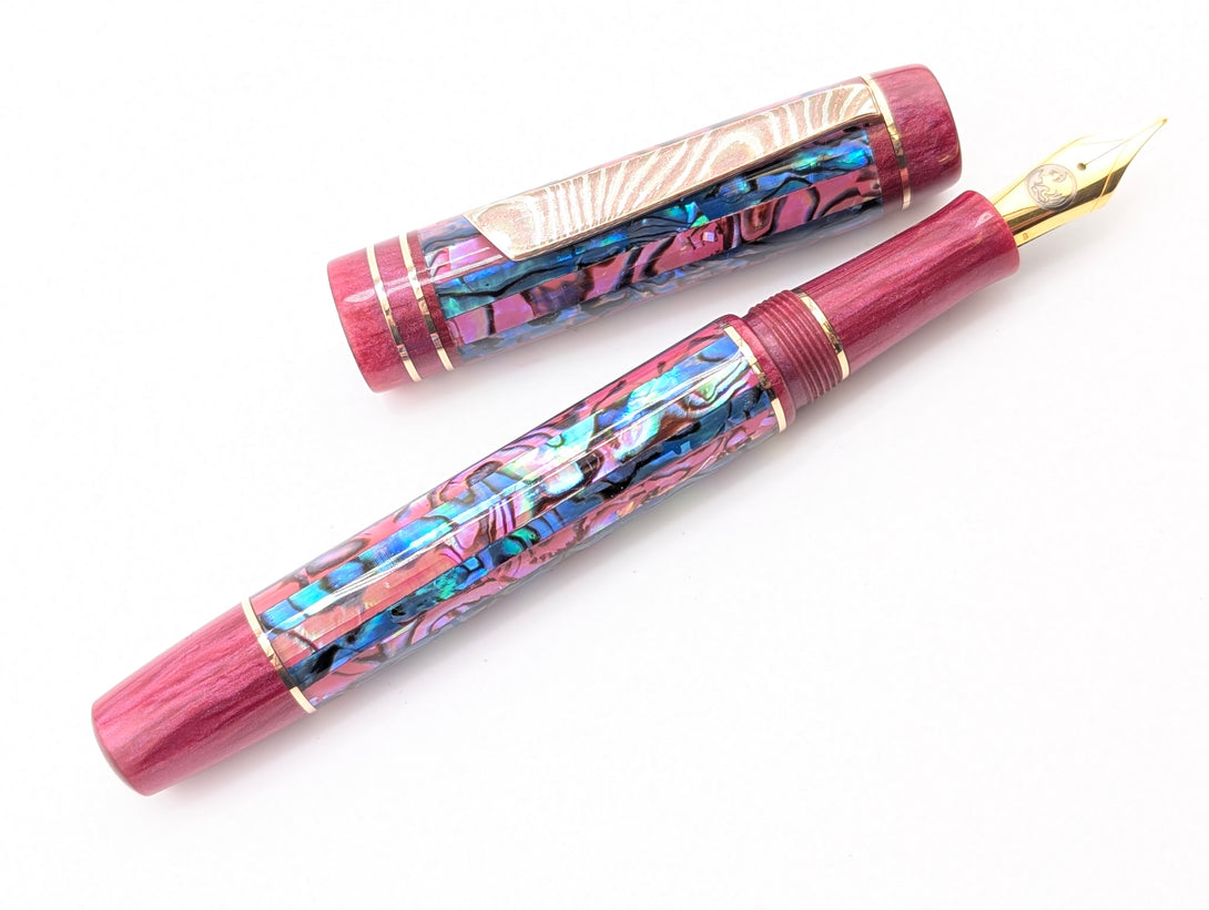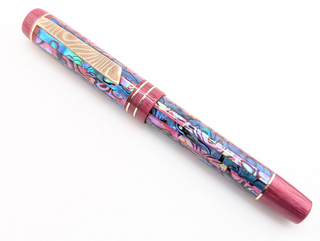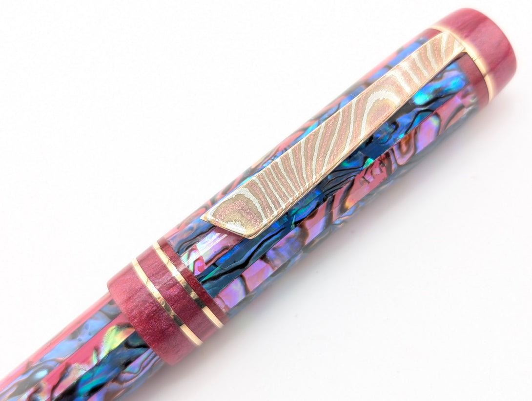 Carina Ragazzone in Rose Marina Abalone with Maroon Lipstick Resin - Mokume Gane